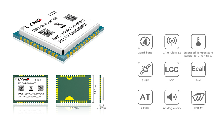 L218 is a Quad-band ( 850/900/1800/1900) module with low-power consumption, high performance . It combines GNSS technology with high-sensitivity receiver.